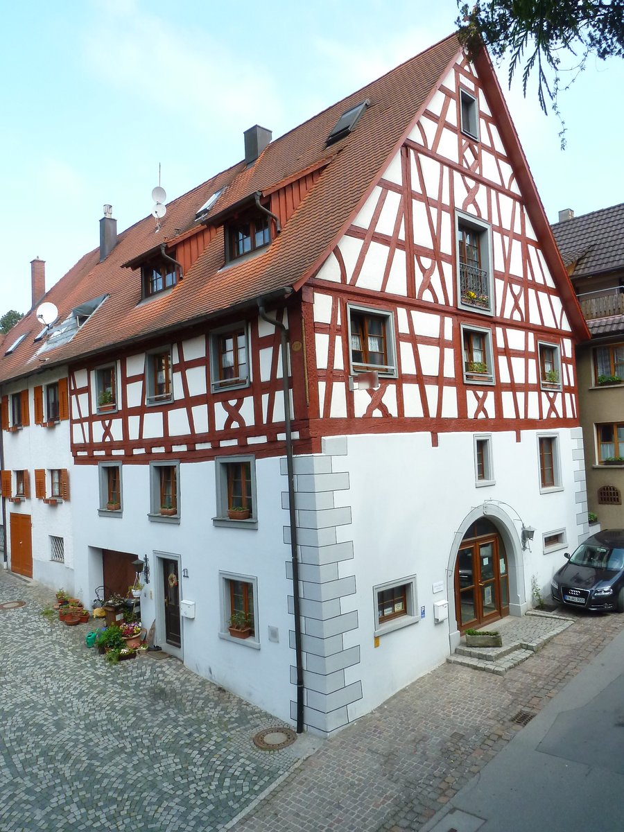 Amtshaus mit Torkel, erste Zehntrechte in Sipplingen 1313 erworben. Das Gebäude besitzt ein sehr hohes und massives Erdgeschoss mit Sandstein Eckquaderungen und im OG ein ausgesprochen prächtiges Zierfachwerk aus der Zeit Anfang des 18 Jh. Das Fachwerk enthält genaste und gebogene Andreaskreuze in den Brüstungsfeldern mit so genannten Eselsrücken verzierten Schwellen und sogar einen aufwendig gedrechselten Eckständer. Auch im Innern des Hauses ist die wesentliche Hausstruktur die auf einen herrschaftlichen Bau mit Torkelfunktion hinweist noch vorhanden. Auch eine qualitätsvolle Kassettendecke und Türeinfassungen aus der Bauzeit. Der ehemalige Weintorkel ist durch zwei Reihen von je sechs Holzsäulen in drei Schiffe abgeteilt. Die hohen Pfosten sind aus 30 cm dicken Pfosten geschnitten – unten vierkantig gelassen und weiter oben kreisrund und stark verjüngt abgedreht. Als Einfassung für die große Toreinfahrt zum Torkelraum, diente ein halbkreisförmiger Torbogen aus grünem Sandstein. Der Schlussstein trägt das Doppelkreuzwappen des Spitals Überlingen und die Jahreszahl 1719 – das Baujahr des ehemaligen Überlinger Spitalhofs.