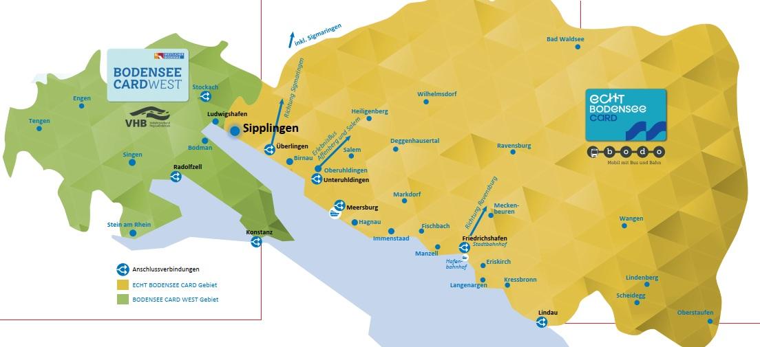 - Freie Fahrt in Bus & Bahn im Nahverkehr der Verkehrsverbünde Bodensee-Oberschwaben (bodo) und Hegau-Bodensee (VHB) und in IC-Zügen innerhalb der VHB-Zonen in der 2. Klasse. Zusätzlich kann die Linie 200 nach Stein am Rhein bis Haltestelle Untertor (Schweiz) verbundsüberschreitend genutzt werden.